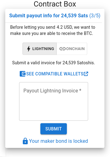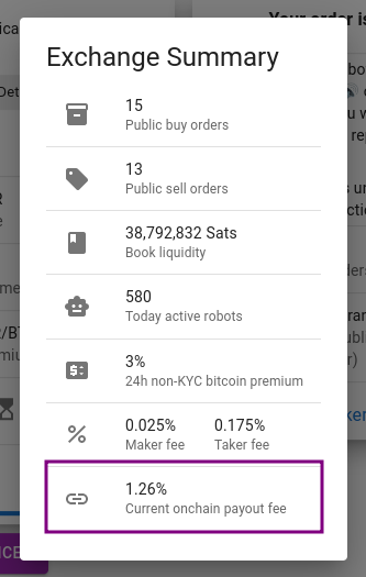 Although RoboSats is an exchange built on top of the Lightning Network, there is an option for the buyer to receive their Sats to an on-chain bitcoin address. This is referred to as an on-chain payout or, sometimes, an on-chain swap (not to be confused with P2P Swaps).
